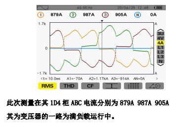 4.1 現(xiàn)場電能質(zhì)量概況 福安市同康金屬制品有限公司出線柜1D4和1D6地點(diǎn)主要負(fù)荷為生 水泵設(shè)備 1.1D4 柜水泵電流為 A 152A B 162A C 137A ,電流最大值為 162A, 電壓值為 400V 左右。諧波比列ABC三相開機(jī)時(shí) THD 值 65.7% 58.4% 57.3% 主要諧波分布 3 次和 5 次最大值 A 63.5A B74.5A C78.5A。1D6 柜電流為A 248A B 258A C 240A ,電流最大值為 258A,電壓值為 400V 左右 ,最小值為 240V,最大值為 258V。 諧波比列 ABC 三相開機(jī)時(shí) 52.6% 57.6% 57.2% 主要諧波分布3次和 5 次最大值 A 113A B123A C116A 。 第 9 頁 共 20 頁