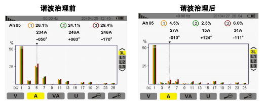 4.2 現(xiàn)場電能質(zhì)量選型和制訂 首先,要保證功率因數(shù)要達(dá)到要求,諧波治理方案要能夠保障主要諧波吸收或抵 消目的的實(shí)現(xiàn),要保障諧波治理設(shè)備投入使用后系統(tǒng)電路內(nèi)的諧波量 對(duì)設(shè)備影響較??;其次,系統(tǒng)改進(jìn)方案要保障裝置自身的安全性。動(dòng) 力柜穩(wěn)定電流按照正常 30%的設(shè)計(jì)要求使用 400A 有源濾波器可以治 理設(shè)備的諧波. 這個(gè)安全性主要是指在系統(tǒng)當(dāng)前存在的諧波電流、電壓的背景下,有 第三,需要設(shè)計(jì)方案的性價(jià)比,在可能的情況下盡量降低系統(tǒng) 造價(jià),提高系統(tǒng)的實(shí)用性;