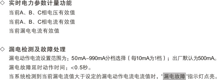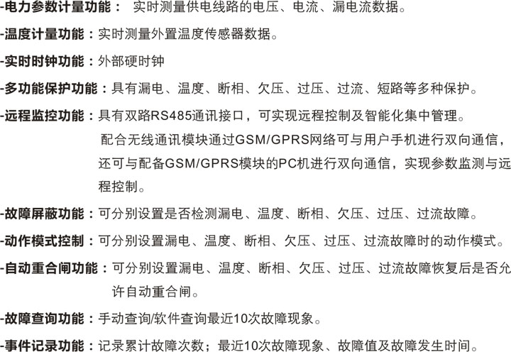 ◇ 多功能保護(hù)功能:具有漏電、過壓、欠壓、過流、短路等多種保護(hù)。