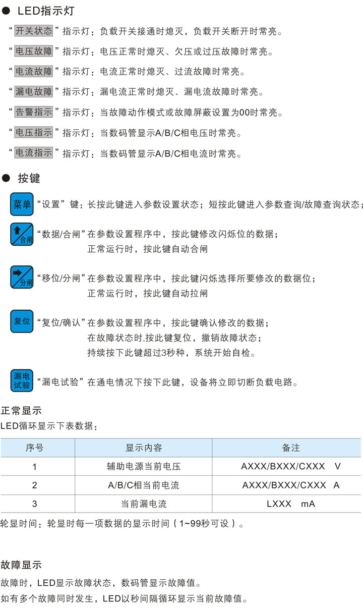 漏電故障恢復(fù)后可自動重合閘。
