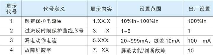 額定動(dòng)作電流值可在上表中"額定保護(hù)電流le設(shè)置范圍"內(nèi)任意設(shè)置。
